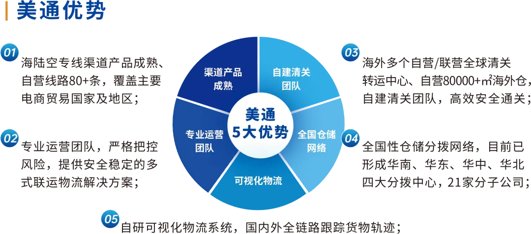 美通供应链(AAF)始于2008年,以一站式、一揽子、一条龙的特色运营,提供安全、稳定、快捷的国际物流服务,助力跨境电商智达全球。