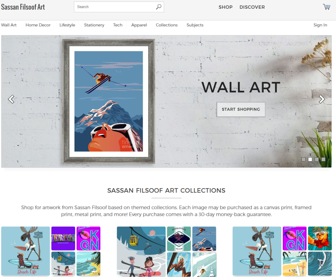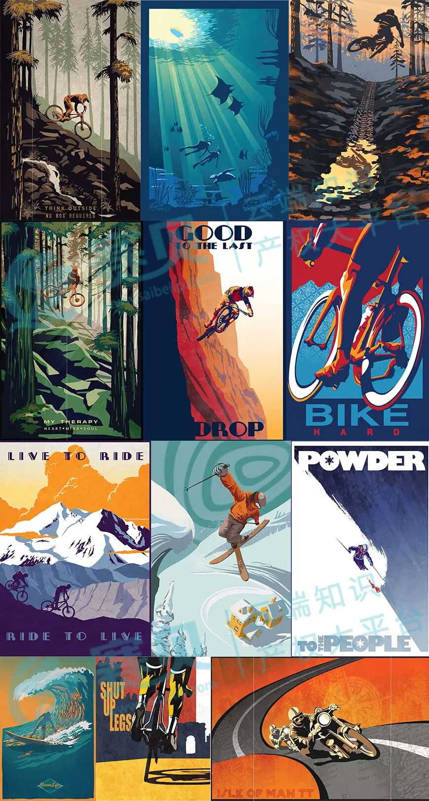 Sassan Filsoof是加拿大籍的资深创作者,有工业设计和传统动画的专业背景,后来专注于插画与设计。他的作品最大特点是 “复古与现代融合”—— 比如借鉴 20世纪复古海报的质感,再结合当代设计元素;尤其擅长运动主题,深耕欧洲自行车文化多年,后续还拓展到滑雪、赛车等领域,作品常被用于 T 恤、装饰画、金属版画等产品。
