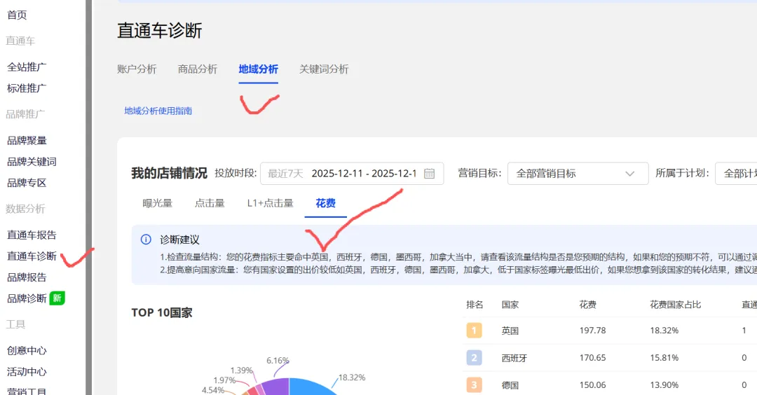 可以检查下自己的直通车诊断-地域分析,查看下花钱国家是否精准