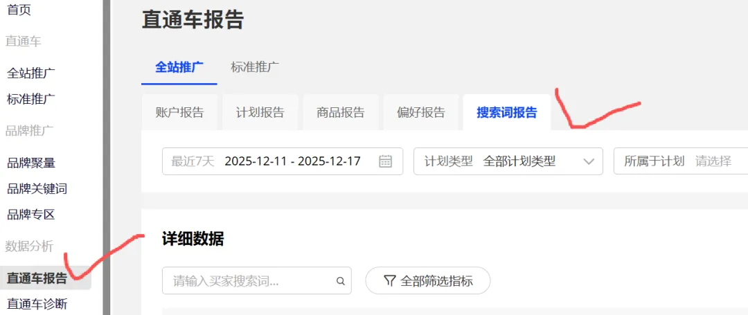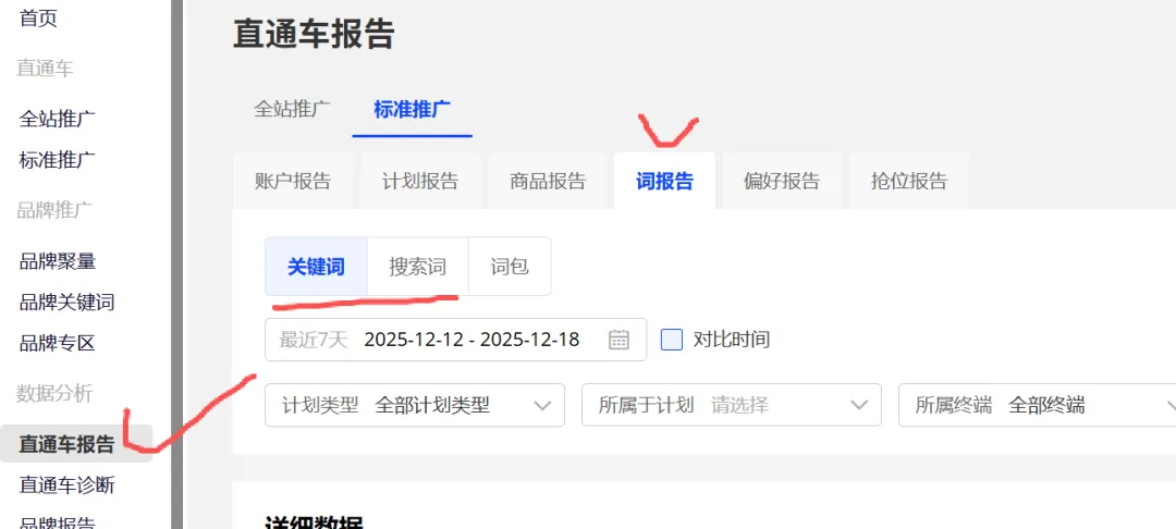 可以打开直通车报告看下词报告内容