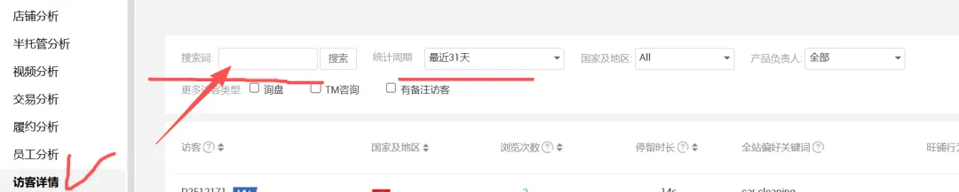【打开访客详情,这里输入下词,进行核对,是否带来TM咨询或者询盘】