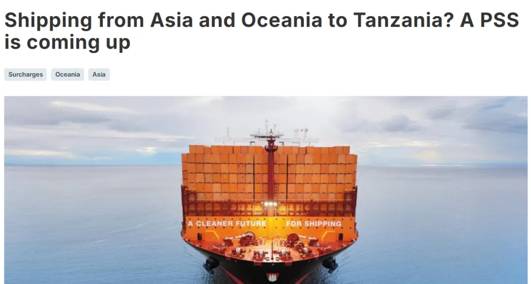 从亚洲和大洋洲地区运往坦桑尼亚达累斯萨拉姆港的货物,即将迎来一项旺季附加费(Peak Season Surcharge,简称PSS)。
