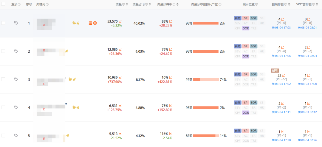 通过以上两个流量占比最高的头部核心词广告位和自然位变化看, 上架出价卖家广告投放比较保守,没有硬砸大词。