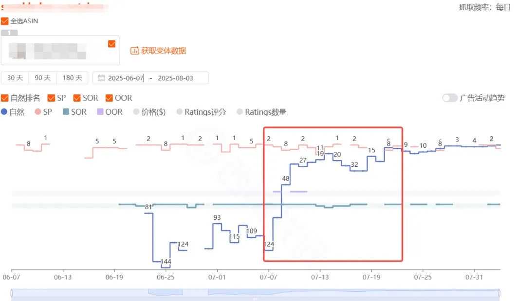 ③广告投放则以 “保守蓄力、聚焦自然” 为原则,不硬砸大词,而是借活动势能下再砸大词让自然位平稳较快上升。