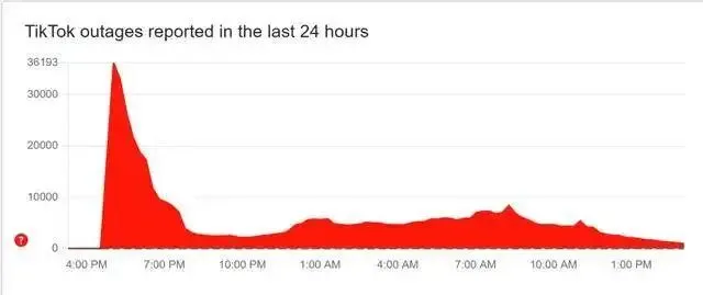 据监测网站Downdetector数据,TikTok网络中断报告在15分钟内超过3.6万份,24小时累计报告超过58.5万份。