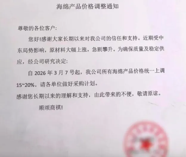 广东好几家海绵生产企业已经发出通知,