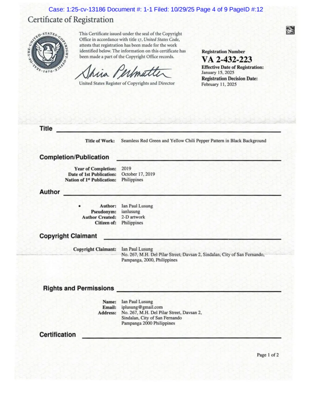 Ian Paul Lusung 是一位自由平面设计师与插画师,主修视觉传达,擅长创作带有浓厚 1980~90 年代卡通与动漫风格的作品。他的设计领域涵盖儿童书籍插画、角色与图案设计、品牌识别以及纺织品图案创作,其作品充满怀旧与现代融合的视觉特色。除了创作,Lusung 也积极维护其知识产权,曾以原告身份在美国伊利诺伊州北区联邦法院提起版权侵权诉讼,显示他对原创内容与版权保护的重视。目前,他的作品主要展示于 PG Prints 等艺术平台。