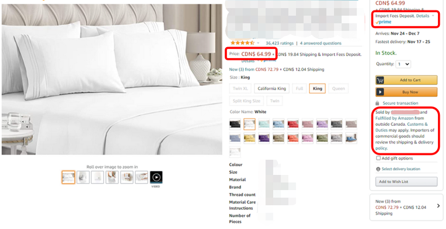加拿大站点FBA远程配送商品详情页面示例