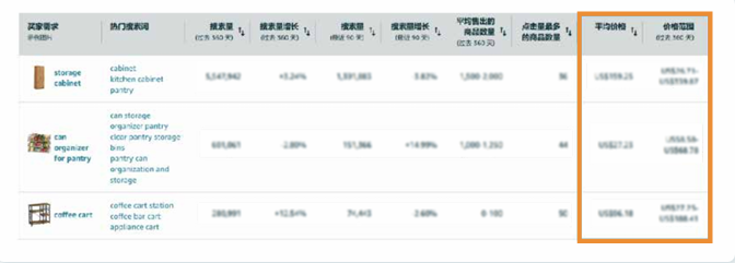 通过在商机探测器搜索细分市场后,根据各个细分市场的平均价格和价格范围,您可以初步框定目标细分市场的价格带分布。