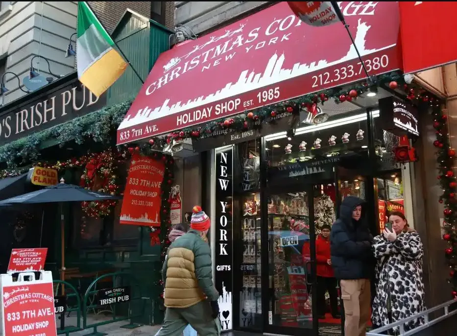 来自美国纽约曼哈顿“圣诞小屋”礼品店店主表示:“一顶驯鹿帽卖近30美元,45厘米小圣诞树卖20美元——如果不涨价就要亏本。”