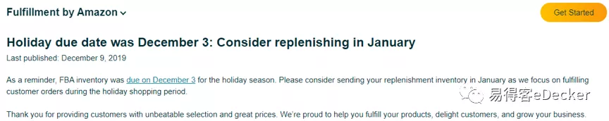 亚马逊只是建议卖家1月发货而已。不过,这对不少FBA卖家来说依然不是个好消息。