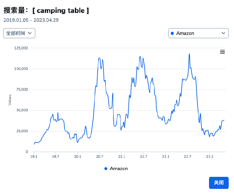 具体应该如何应用呢?以下两站图是camping table这个关键词的搜索量历史趋势图。