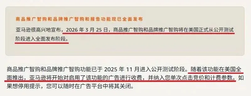亚马逊这几个月动作一个接一个,这周又来了一个需要立刻盯紧的消息:Amazonads官方确认,SPP(Sponsored Products in Prompts)和SBP(Sponsored Brands in Prompts)将于2026年3月25日在美国市场正式结束公开测试阶段(Open Beta),转为全面可用(General Availability)。