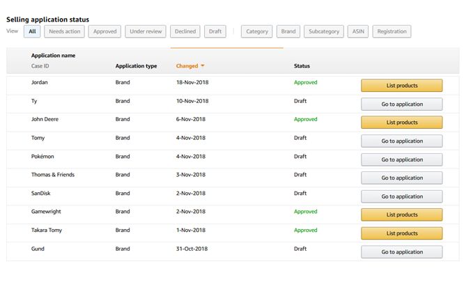 从2018年11月12日起,使用批量上传工具刊登的listing中如含有销售限制产品,工具将自动生成销售申请。卖家可在卖家中心的“Selling Applications”(销售申请)页面查看所有还未通过审批或已通过审批的申请。