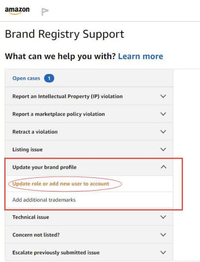 ③选择“update your brand profile”下拉框里的 “update role or add new user to account”