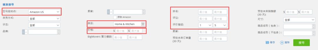 以家居行业为例,我们应该在【Home&Kitchen】大类中找出相关的商品信息,再进一步筛查,单价、评分、评分数排名等情况哦,一键精准搜寻,找出隐含的商机!