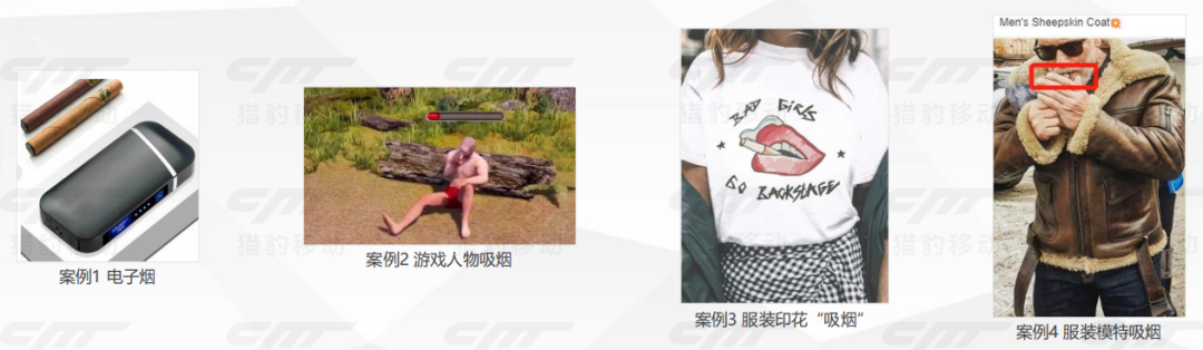 游戏人物在吸烟、服装印花上有“吸烟”的图案、服装模特在吸烟等。有些内容不仔细看确实很难发现,但这种擦边的操作还是不要明知故犯啦!