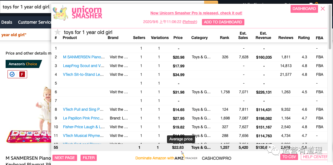 3)Unicorn Smasher具备的JungleScout唯一没有的字段是Variations。但是即使产品有变化,它们都显示为``1'',所以我想它实际上是行不通的。我对Unicorn Smasher感到非常失望。 因此,我对Unicorn Smasher的评判不是很好。好的,它是免费的,但是如果工具非常不准确,那就没什么用处。