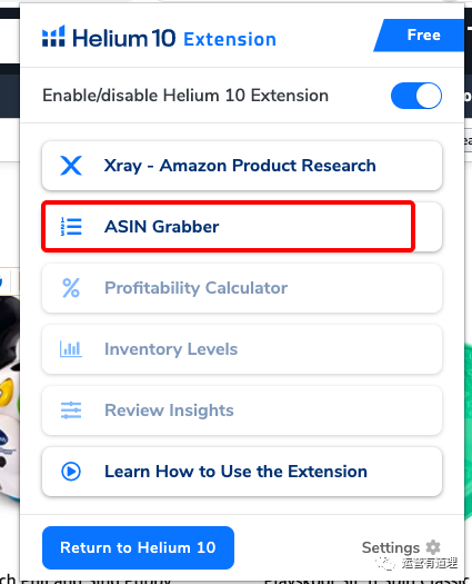 在Helium 10的插件中,还有一个小功能,叫Asin Grabber (Asin 抓取)