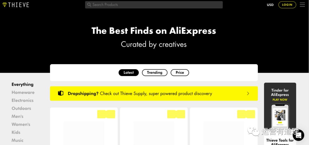 一进入网站,就能发现其定位,专门推荐/发现 AliExpress(速卖通)上的好产品的网站,上面的产品也是用户通过投票而来。点击该网站的产品,即可跳转到AliExpress购买。