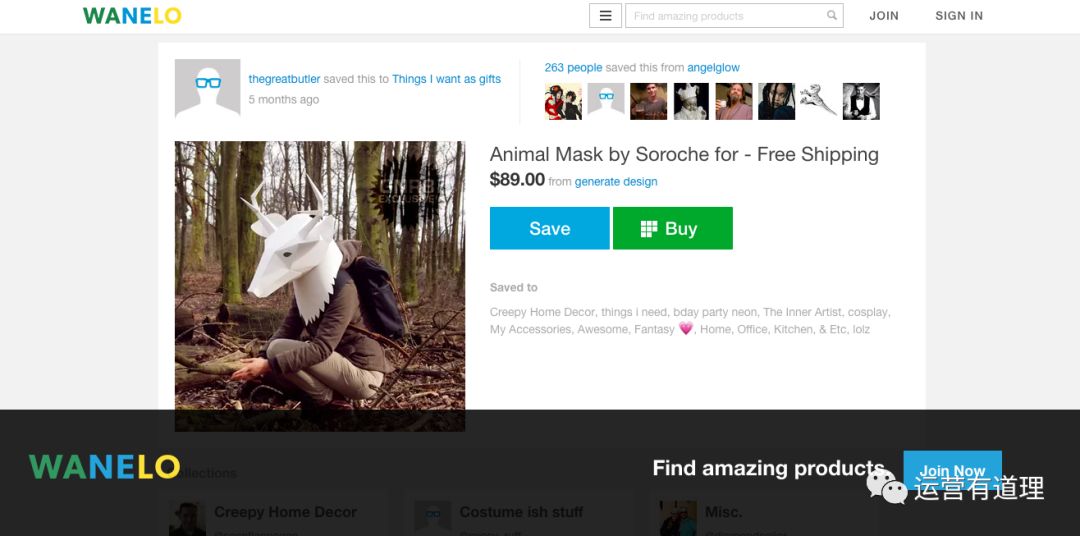 寻找令人着迷的产品。Wanelo以类似pinterest的产品发布格式,将产品和商店聚集在一起。Save越多,就越受欢迎。
