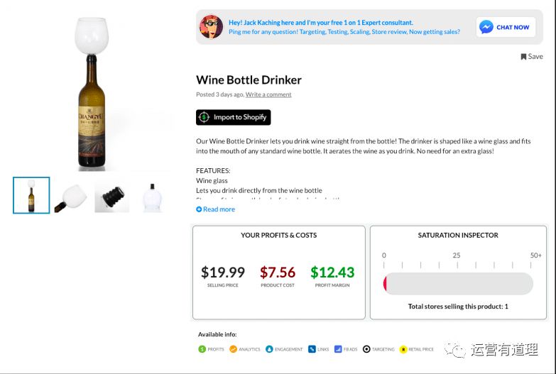eComhunt 可以查看到产品利润、产品分析、参与度、链接、Facebook广告、产品视频、Facebook定位和产品类型等,部分功能要收费。
