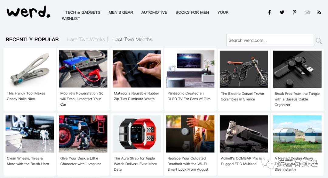这个网站主要介绍一些男人喜欢的产品,包括各类科技产品、机械产品、男人的书籍、甚至食物。类似男性版的“什么值得买”。这个网站推荐的产品都比较接地气,对你可能有帮助,这也是小编推荐的原因。