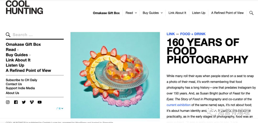 Cool hunting是一个由作家和编辑组成的团队,他们利用自己特有的渠道、洞察力和知识,推荐和分享有品味的产品。