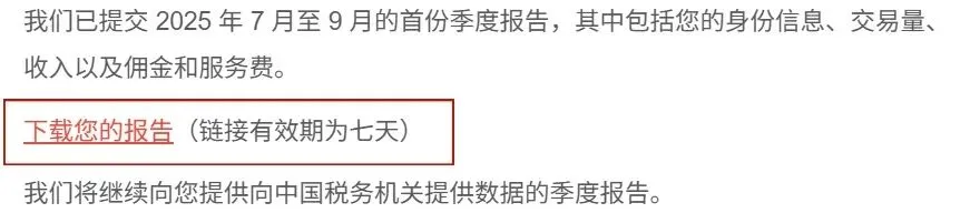 邮件中的报告下载链接有效期仅为7天。请务必及时下载这份Excel表格并妥善存档,它将成为后续税务核对或沟通的正式依据。