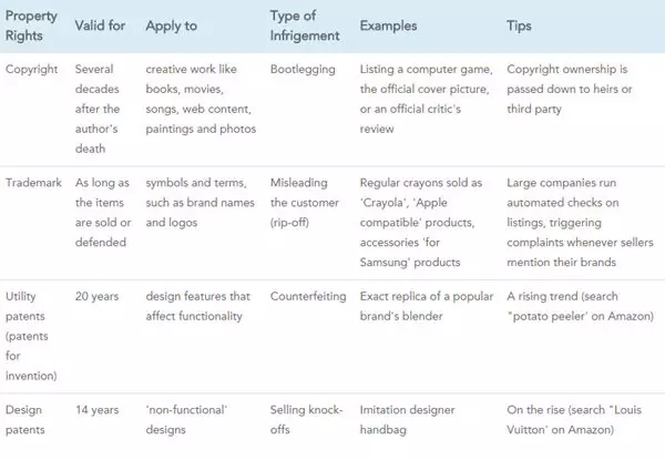 知识产权包括版权(Copyright)、商标权(Trademark)、发明专利权(Utility Patent)和设计专利权(Design Patent),这四类知识产品需要亚马逊卖家们共同维护。亚马逊尊重知识产权,平台政策规定,如果店铺出售假货、盗版和未授权产品等也将导致卖家账号被封,资金遭到冻结。