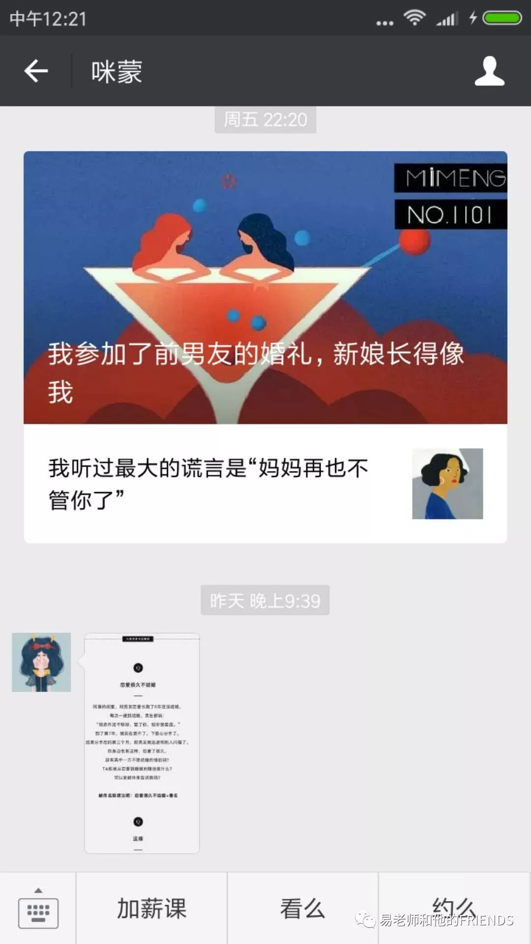 咪萌的文章很多时候都是“我一个朋友”,“我身边谁谁”,