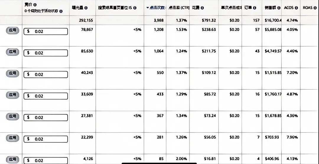下载广告报告+自然出单词,整理高转化词 新建手动广泛广告 竞价:$0.02 + ROS溢价900%
