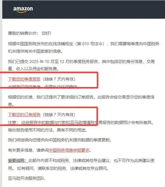 按照相关规定,从去年三季度开始,亚马逊这类境外电商平台就需要按季度向中国税务机关报送中国卖家的完整数据,此前行业里几乎形成了共识,觉得境外主体不在报送范围内,这也是无数卖家搭建境外架构的核心原因。可这次四季度的数据推送,直接打破了这个默契,香港公司店铺收到的报送要求和内地主体完全一致,美国公司只要法人是中国身份同样未能幸免,平台推送的明细数据,包括身份信息、交易金额、收支、佣金、汇率折算等,和提交给税务部门的内容完全同步,不是可能报送,而是已经实实在在交了上去。