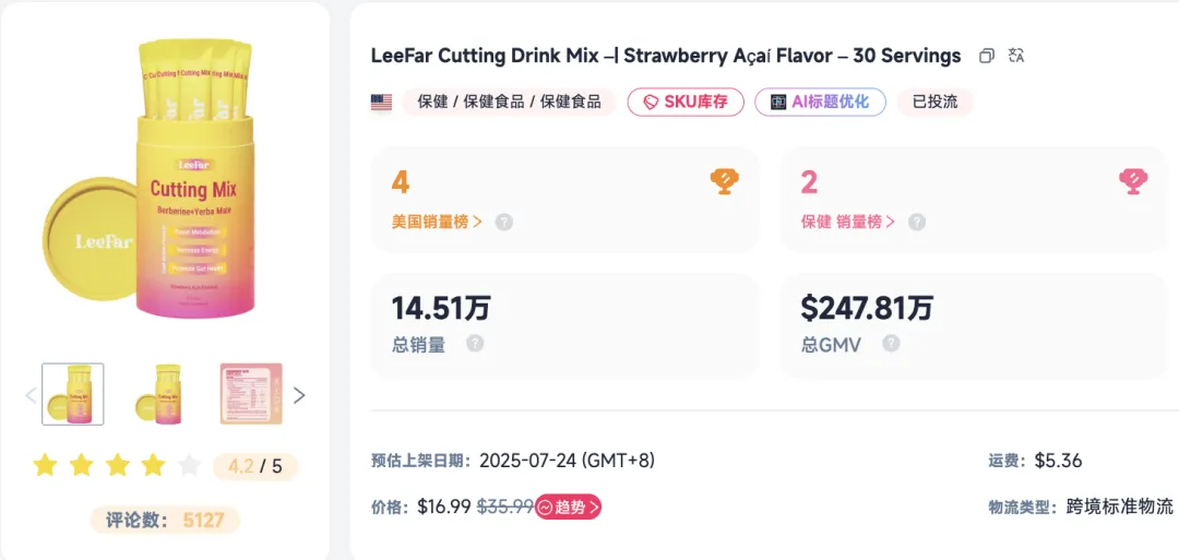 最近在TikTok Shop美区,一款名为LeeFar饮品的保健品表现相当抢眼,短短时间内便成为平台保健品品类销量榜的头部选手,其背后的数据和营销逻辑值得深入探讨。