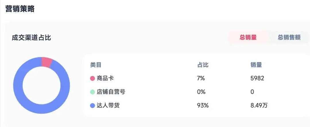 更为关键的是,这一成绩的实现很大程度上得益于超过2000名达人的短视频带货,达人带货在总销售额中的占比高达93%,这意味着产品几乎完全依靠内容营销实现转化。