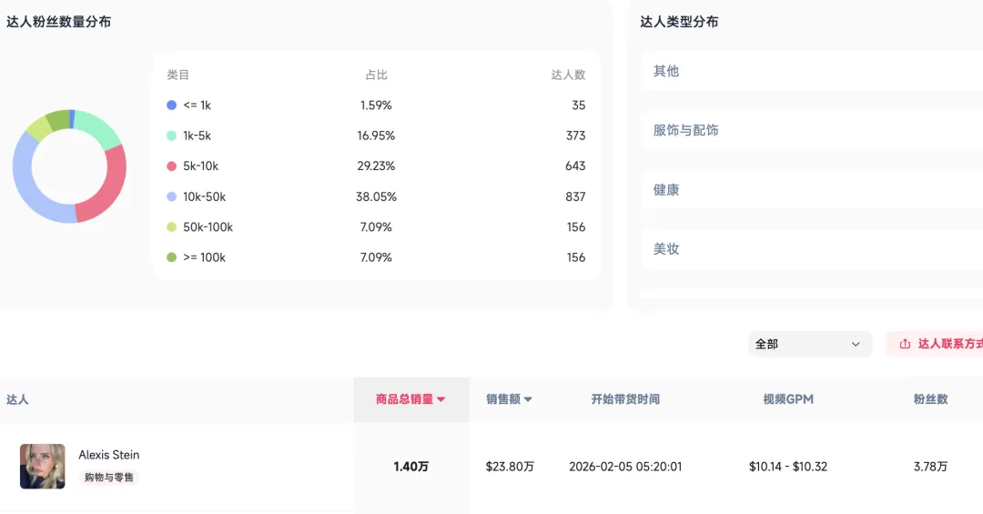 粉丝量3.74万的达人能创造23万美元销售额,说明在北美市场,用户更倾向于信任与自己生活状态相似的创作者。腰部达人的优势在于真实感强、互动率高、粉丝粘性大。品牌不应只追逐头部达人的曝光量,而应构建一个由中腰部达人组成的“内容矩阵”,通过不同视角反复触达同一类用户,形成认知叠加。