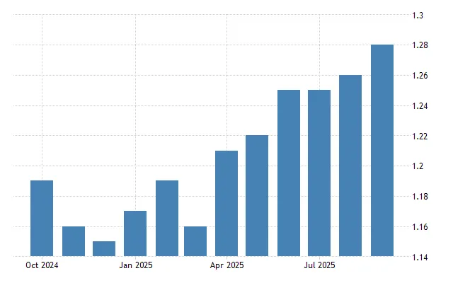 墨西哥平均油价,单位:美元/升。来源:TRADING ECONOMICS