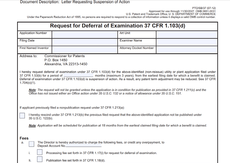 申请人在USPTO发出一通前主动提出请求延迟审查
