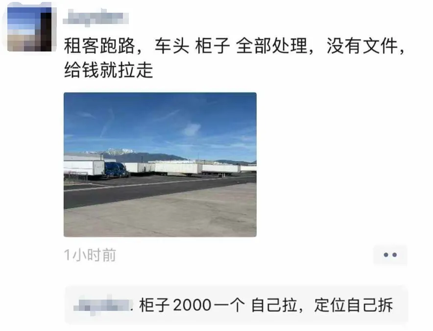 租客跑路,车头、柜子全部处理,没有文件,给钱就拉走