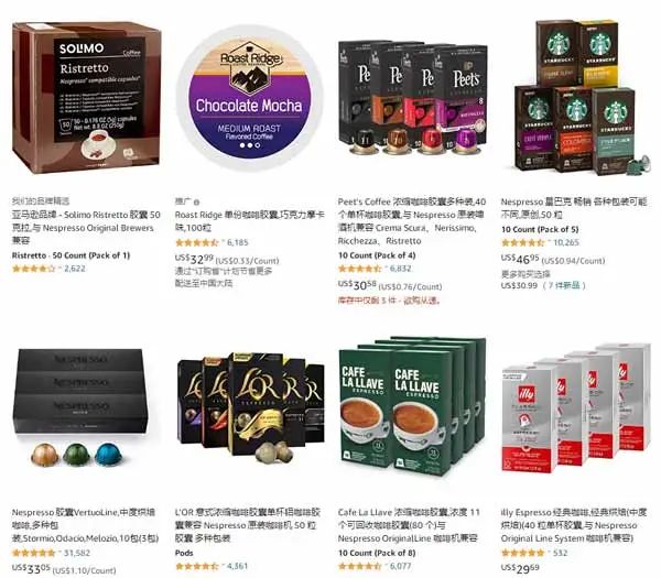 小编在亚马逊上随便找到一款“咖啡胶囊”它在亚马逊上好评率高达90%!星级:7688。