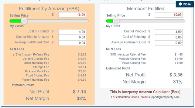利润计算:输入产品价格、成本、运费和仓储费用之后,给出商品的利润和毛利率,有FBA和自发货两种计算模式