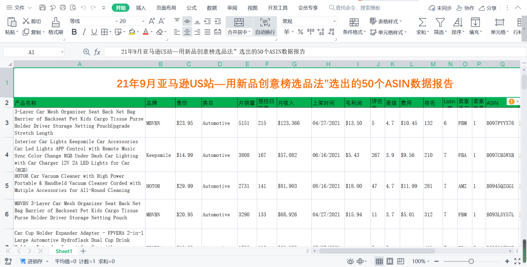 21年9月亚马逊US站—用新品创意榜选品法”选出的50个ASIN数据报告