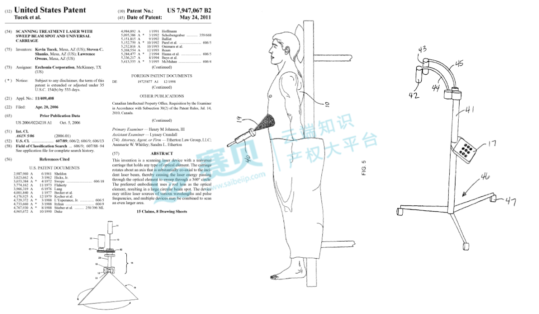 本案涉及维权信息尚未公布,赛贝通过诉状解读和往期案件推测,原告此次维权可能涉及2 项核心专利维权 —— 一个保护“激光减脂方法”,一个保护 “激光扫描设备结构”,正好形成 “方法+设备” 的双重保护。赛贝提醒跨境卖家朋友,未经授权不得擅自使用,以免引发侵权风险。