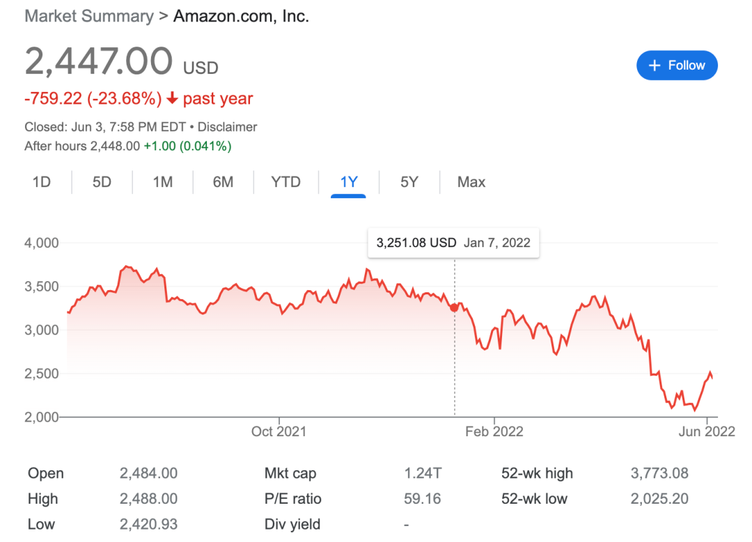 亚马逊的股价,对比去年跌了将近1/4,这对于一家全球市值前十的公司来说,是相当可怕的。