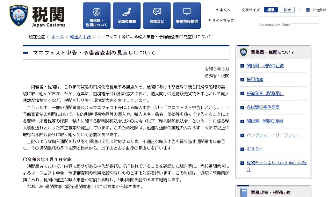 日本税关3月10日发布公告,从2026年4月1日起日本进口清关申报要求会进一步收严,日本海关会进一步提高申报信息准确性和真实性要求、加强货物查验力度。对于商家来说,需要加强商品合规意识,进一步规范日本市场商品经营。