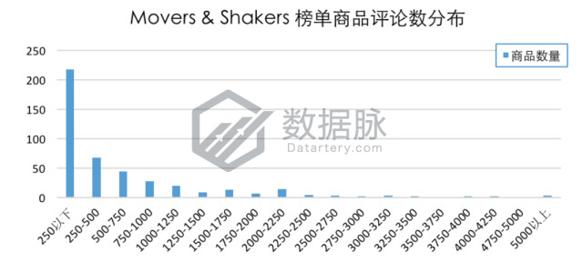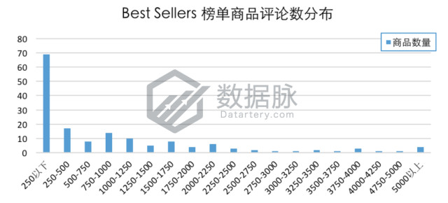 在本次分析,登榜Toys & Games品类Best Sellers榜单的商品中,单个商品拥有的最大评论数为37782.0条,最小评论数为0.0条,平均评论数1540.24条,评论平均星级4.38星。骆探长(shujumai.com)发现,相比上期分析,平均评论数稍有下降,并且评论星级减少0.04星。在上榜商品中,有42.86%的商品评论数低于250条;还有部分商品评论数在250-500条之内,占比达10.56%;此外,该周有4款商品的评论数在5000条以上,占上榜商品数的2.48%。