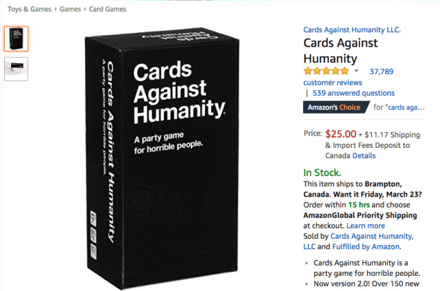 而品牌Cards Against Humanity LLC.的反人类游戏卡,分别以平均排名3.86位列综合排名第二;