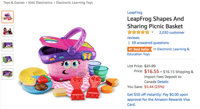 品牌LeapFrog的野餐玩具套装以平均排名8.57位居综合排名第五。