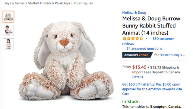 品牌Melissa & Doug的兔子毛绒玩具登榜4次,以平均排名41.0位列综合排名第三,其单日最大涨幅为61.0%;