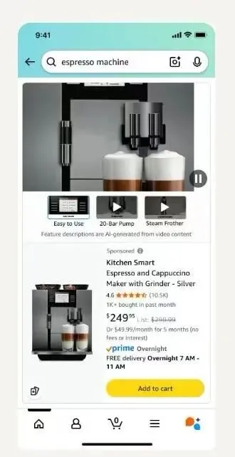 亚马逊推出的对话式AI购物助手Rufus,正在改变用户的购物习惯。用户不再需要搜索关键词在海量Listing中筛选,而是直接向Rufus提问,获得个性化的推荐。Rufus会根据用户的浏览记录、搜索历史,给出匹配度较高的SKU推荐,亚马逊的广告系统已接入Rufus对话框,以“赞助答案”形式响应用户提问,按CPC计费,也就是说未来不是谁出价高谁获得流量,而是谁的Listing能更好地回答用户的问题——视频内容显然比文字更有说服力。